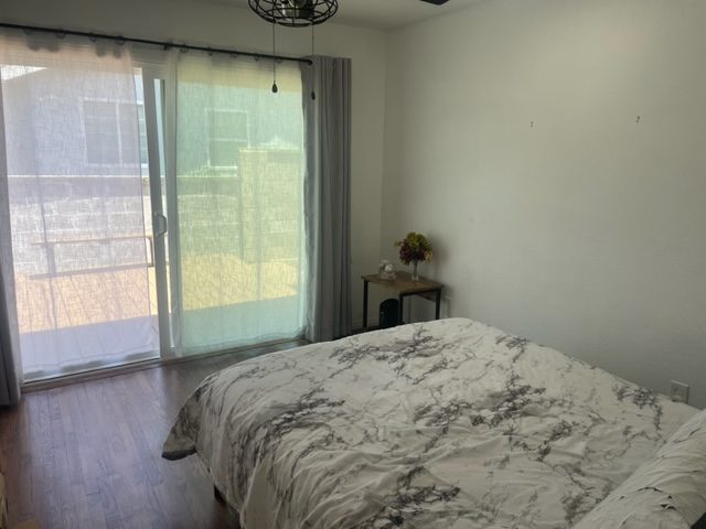 Step directly from the bedroom to the beautiful sideyard deck. View the flowers, exit property through the side gate. Bedroom has solid oak floors, television mount with electrical & cable outlet, led lighting, connected to the internet.